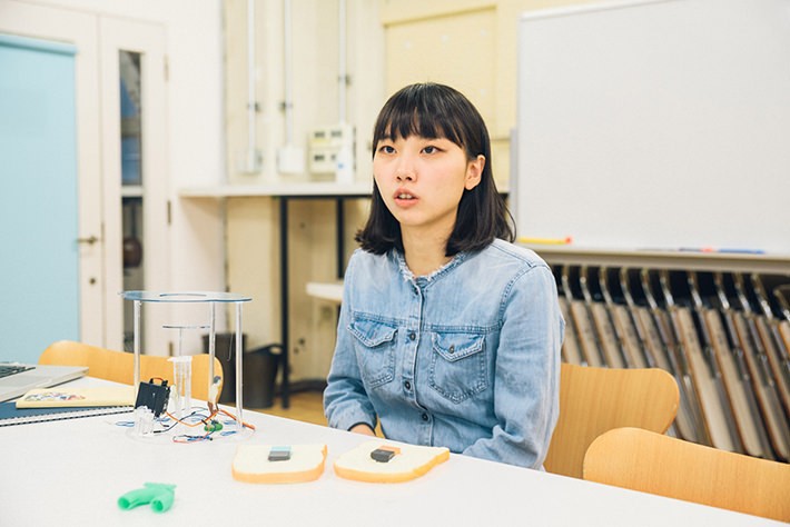 「私が作業している『DMM.make AKIBA』は、わからないことがあると周りの人に聞ける環境なので、いつも助けてもらっています。特にIoTデバイスに詳しい方が多く、最近だとMESH*1を教えてもらいました。IFTTT(イフト)*2と繋げてIoTできるのがとても便利で、特にモーターなどに繋げられるGPIOタグ*3は作でもよくつかうようになりましたね」