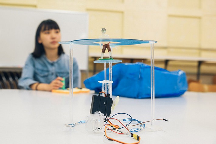 最初はダンボールでピタゴラスイッチ的な作品を作っていたそうですが、アイデアを実現するのに電子工作が必要なのがわかると、ネットで調べたり、詳しい人に教えてもらいながら、どんどん技術を取り入れていったのだとか。