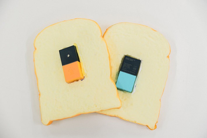 - *1 MESHとは、センサー、ライト、ボタン、明るさセンサー、といったさまざまな機能をもったブロック状のIoTデバイスのこと。たとえば、専用のアプリをつかってこれらを組み合わせることで、人が通った時に音を鳴らす、ぬいぐるみを動かすと音声が再生されるなどといったことができるようになる。