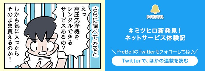マンガ家でライターの斎藤充博さん。「ベランダを掃除するために、高圧洗浄機を使ってみたいけれど、高い買い物だし……」と、購入を迷っていたところ、カメラや家電製品を中心にレンタル及び販売をしているネットサービス・Rentio(レンティオ)を発見!そこではどんな新発見があったのでしょうか……?