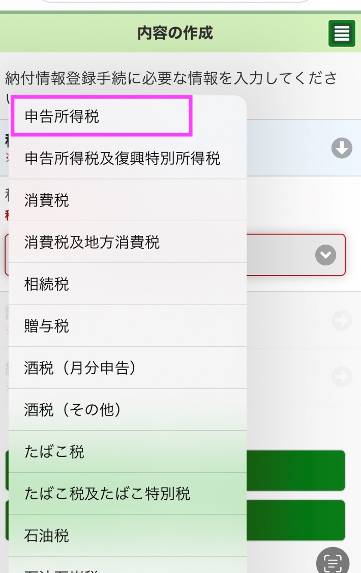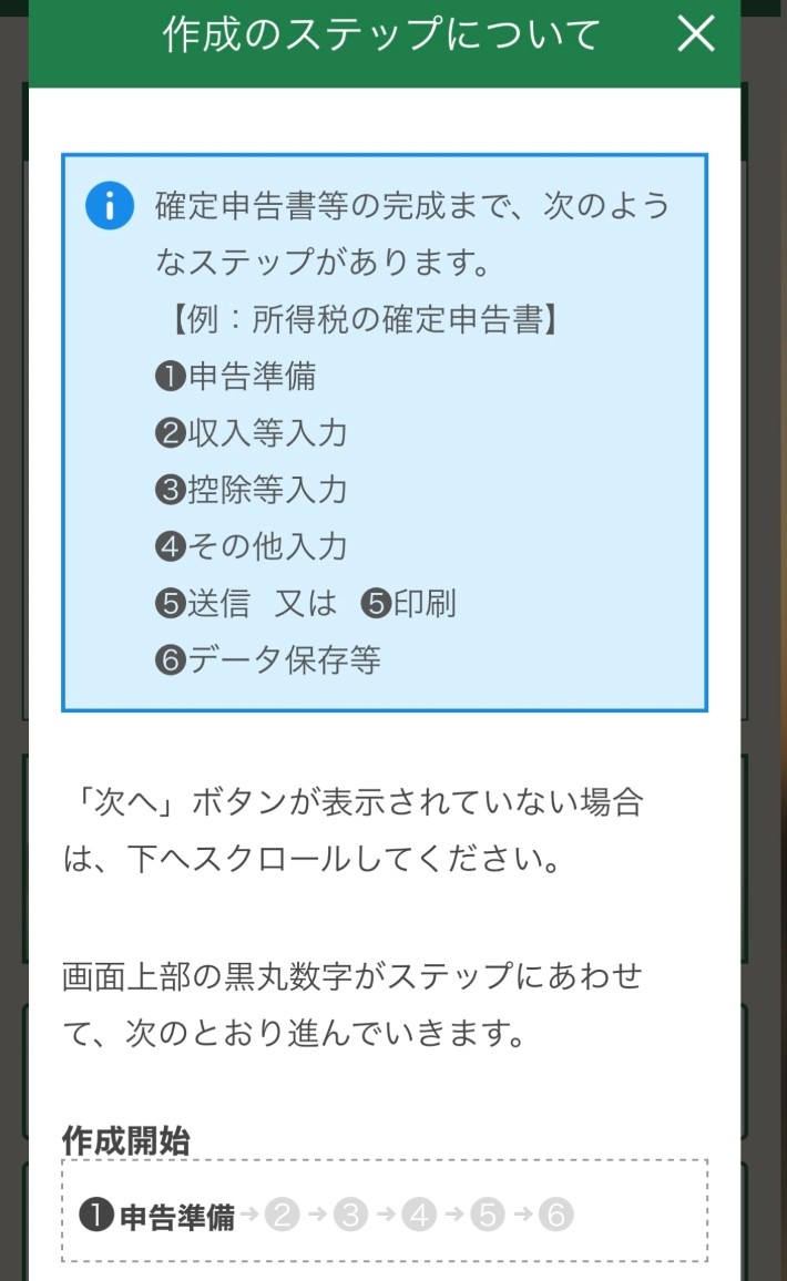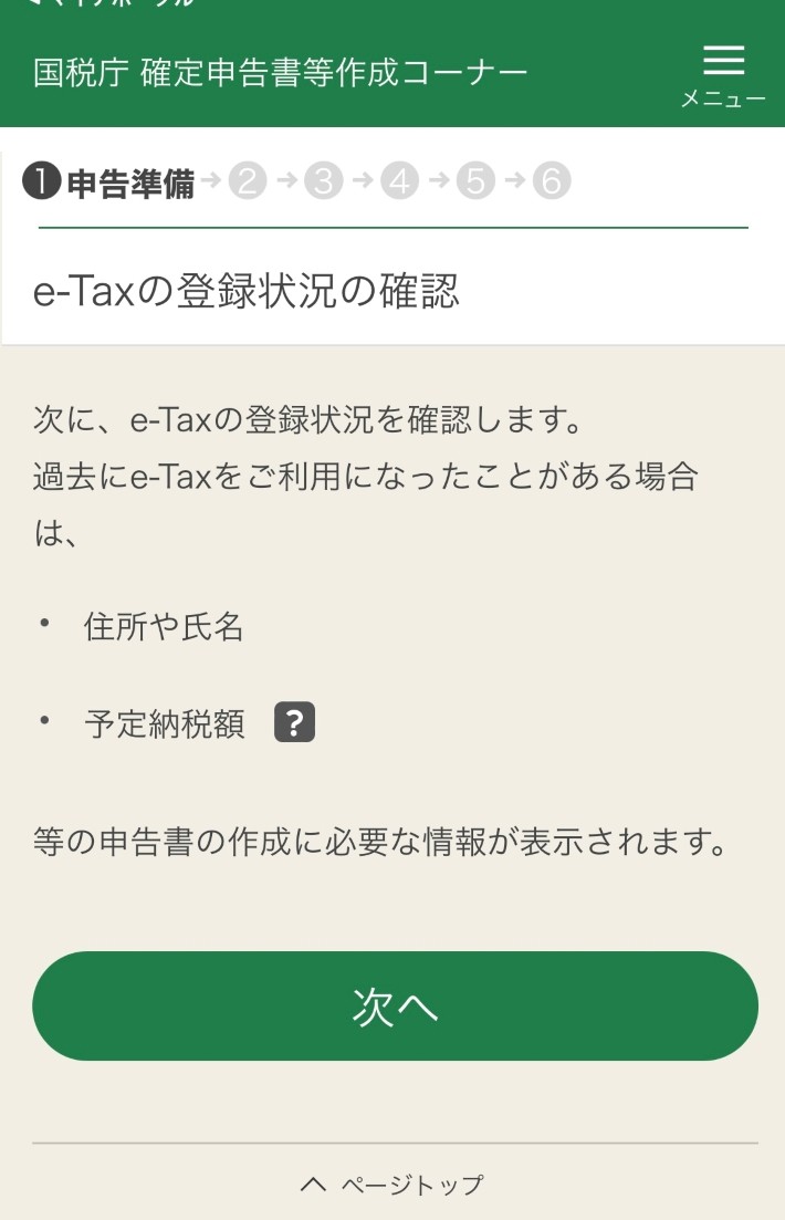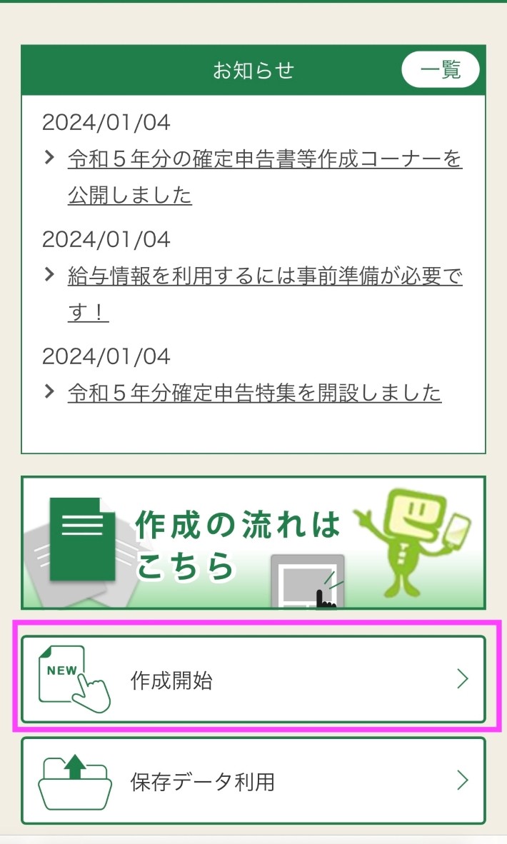 e-Taxのホームページにアクセスし作成開始を選択し登録状況等を確認します。