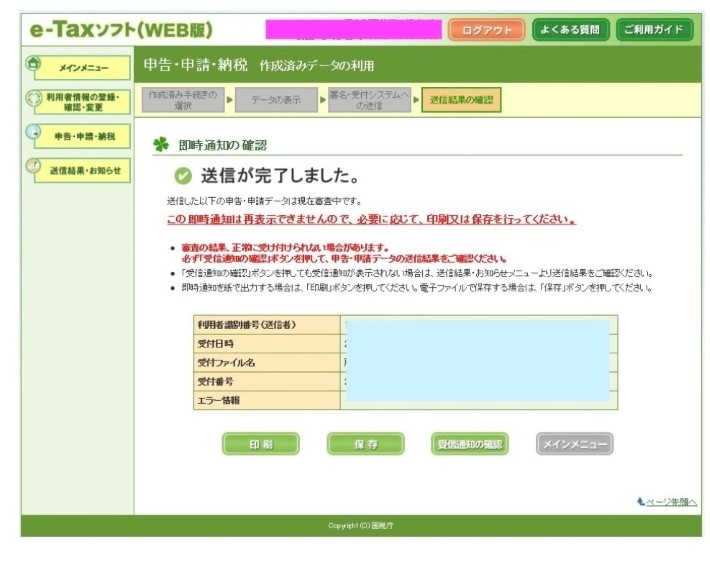 申告書の内容に問題がなければ、e-Taxを介して申告書を提出します。作成したデータは必ず保存しましょう。