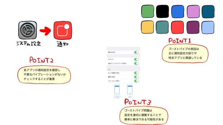 さらに、特定アプリの通知を個別に調整し、問題の原因を特定することが推奨されます。これらのステップを踏むことで、ゴーストバイブ現象を解消し、快適なスマホ利用が可能となります。