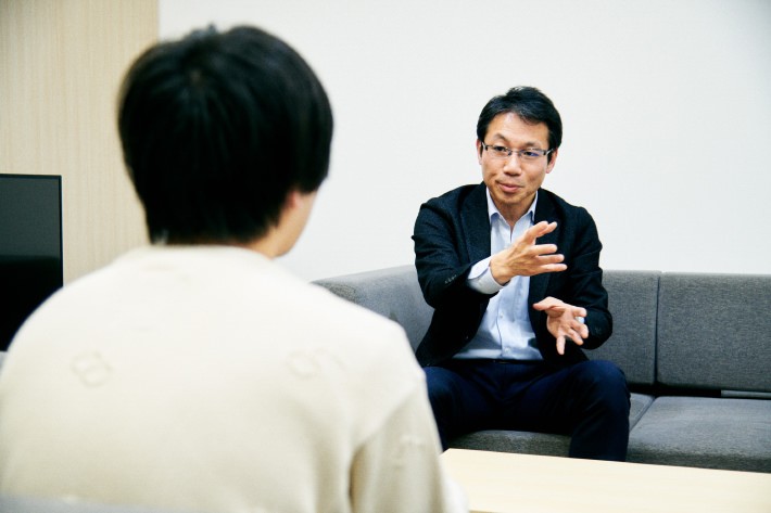 スポーツ情報にはちょっぴり疎いカルチャー男子のライター早川大輝(左)と、ソニーで5G技術を活用したエンタテインメント事業の開発に携わる山口周吾さん(右)。