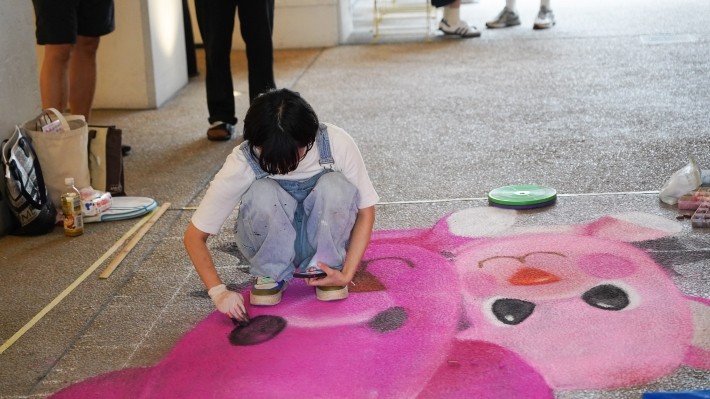 「巨大3DアートのLIVEペインティング」で中目黒高架下にモモが出現