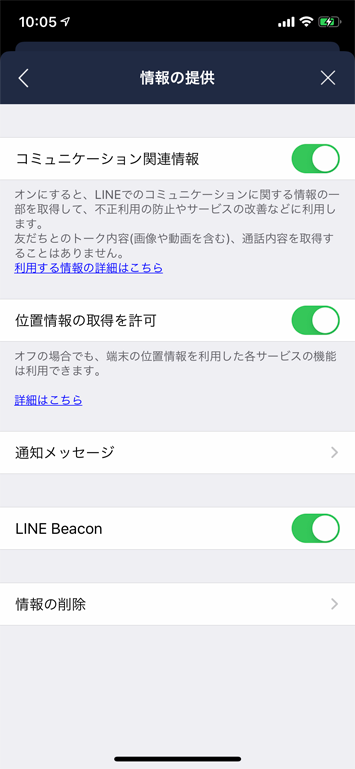 位置情報や「LINE Beacon」の利用を許可したけれどもその設定を変更したい場合は以下の手順を踏みます。