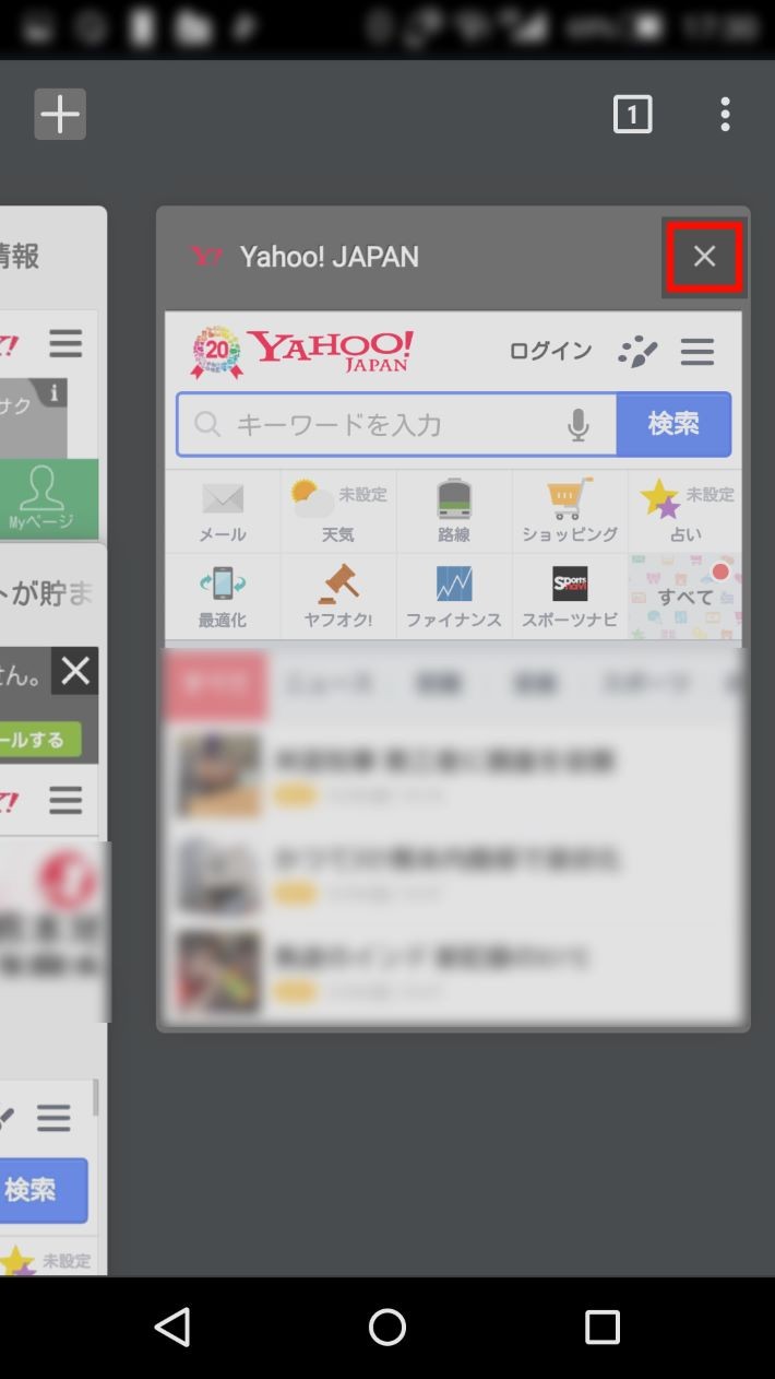 (Yahoo!より)①数字をタップし、タブ一覧を表示させます。