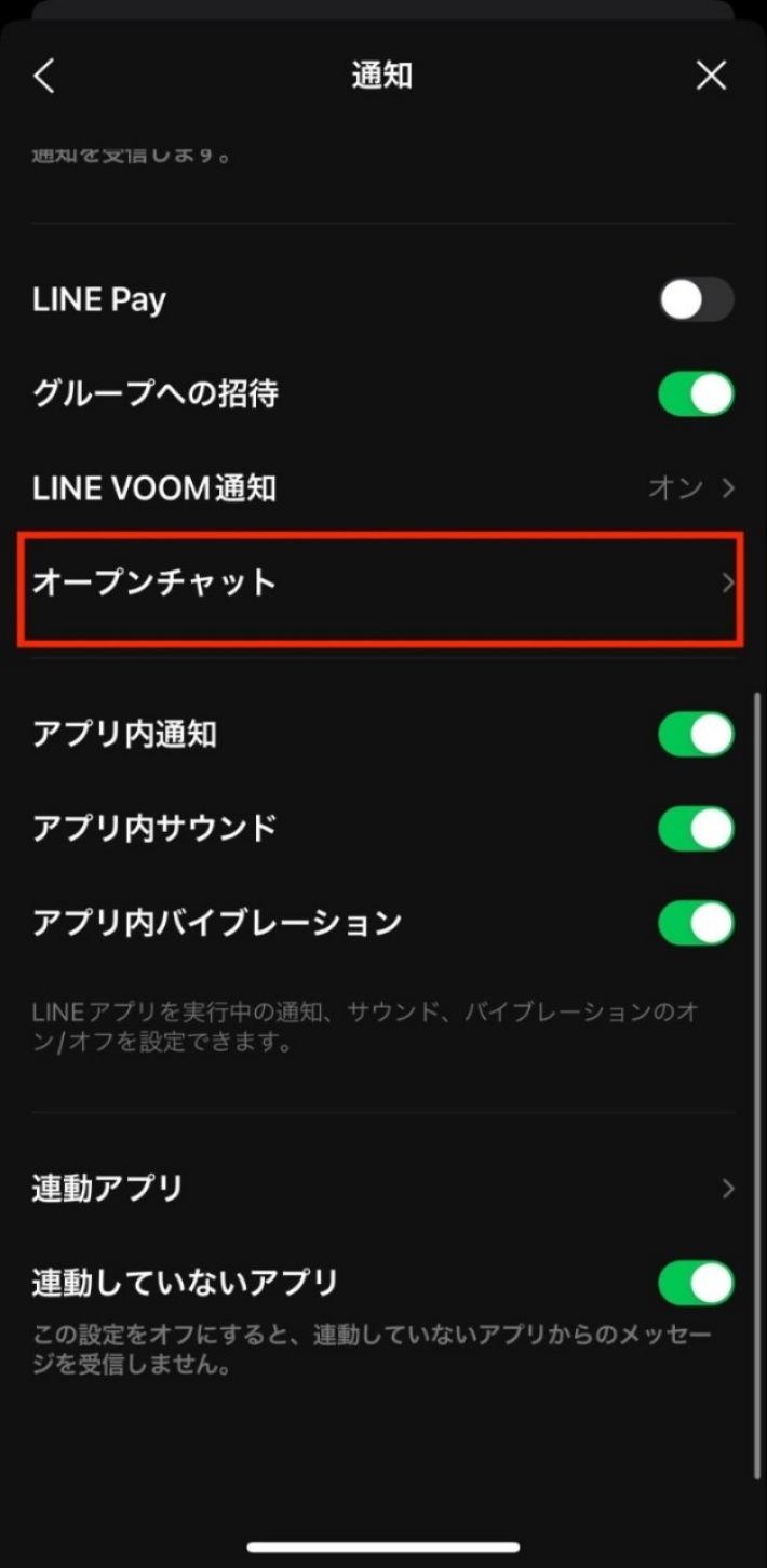 オープンチャットの非表示設定をすることで、友達からのメッセージの未読通知のみを表示させられます。