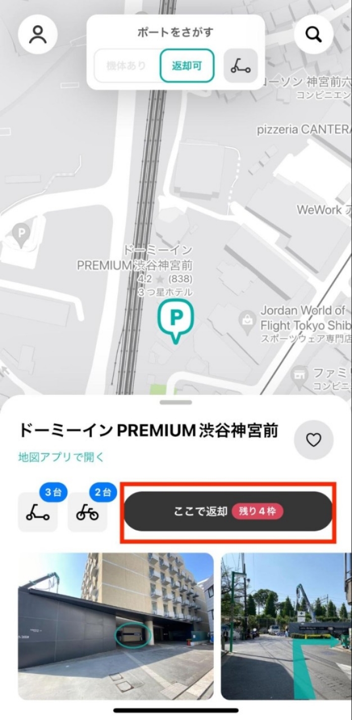 電動キックボードをレンタルするには、まずポートと機体を探す必要があります。